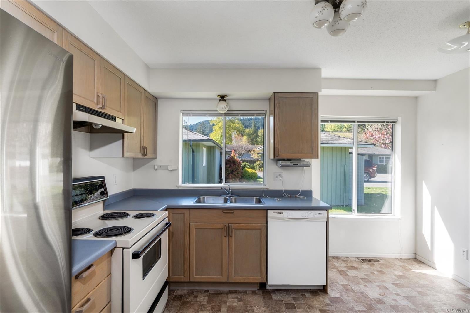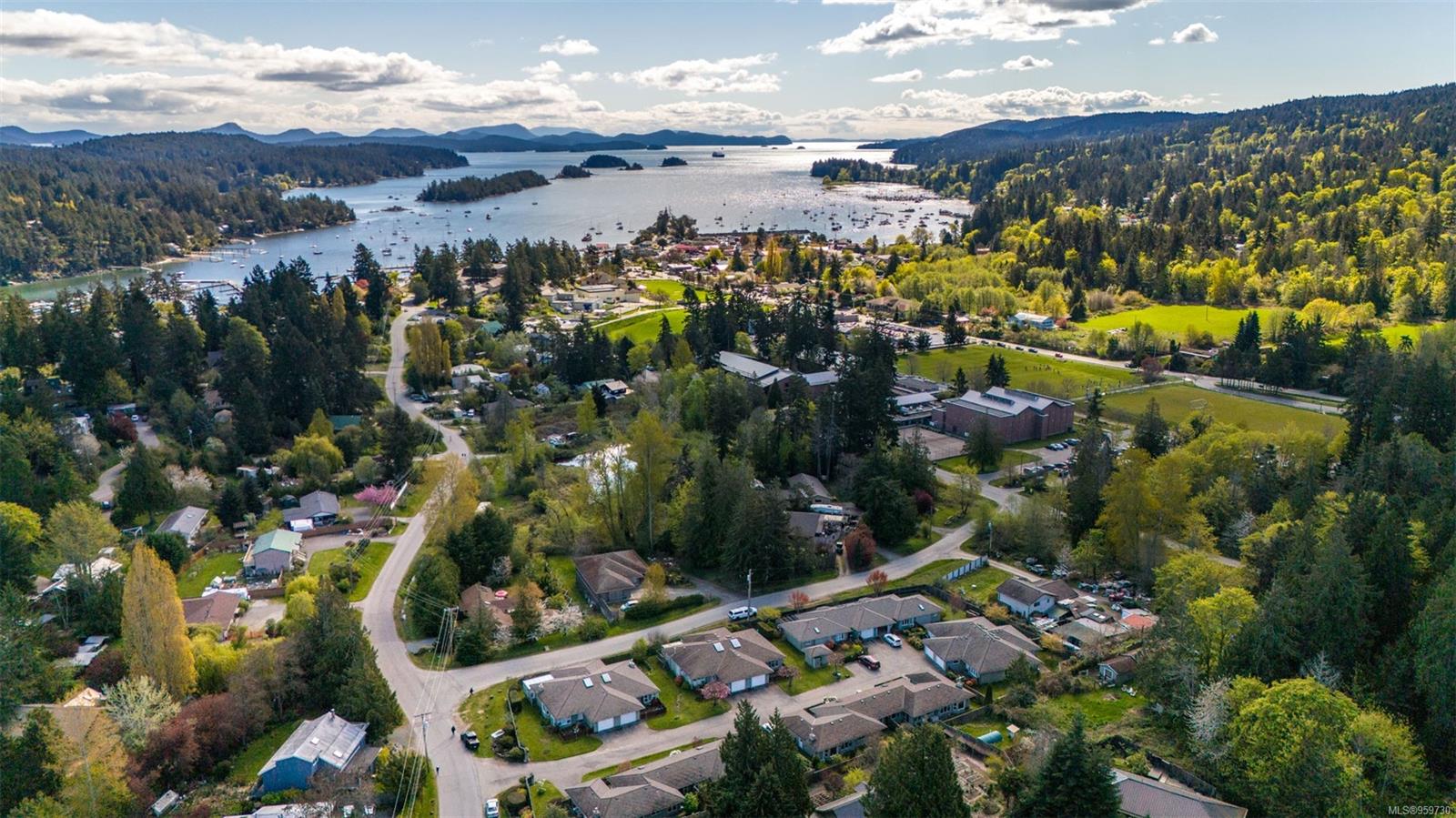 In a quiet enclave within easy walking distance to Ganges village shops and amenities, as well as the island’s uptown shopping area, this sunny 2 bedroom, 2 bathroom townhome has it all. New built-in heat-pump / air conditioner, large main living area, with fireplace and bay window, faces south, getting plenty of light from ‘picture’ windows along the south-facing wall and from the sliding doors to the rear deck and garden. Cheerful light and bright kitchen has a sweet eat-in area that’s bathed in sun for your morning coffee. Offering a total of 1200+ sf, this comfortable, liveable unit enjoys a spacious primary bedroom, heat pump efficiency, lots of storage/closet space, skylights, single car garage, and fenced concrete patio on the southwest corner to enjoy afternoon sun. Your grassy yard is easy care but with room for gardens, as much or as little as you'd like. A built in neighbourhood and community lives here, just steps from the indoor swimming pool, as well as the uptown grocery store/pharmacy, hospital, and eateries.
