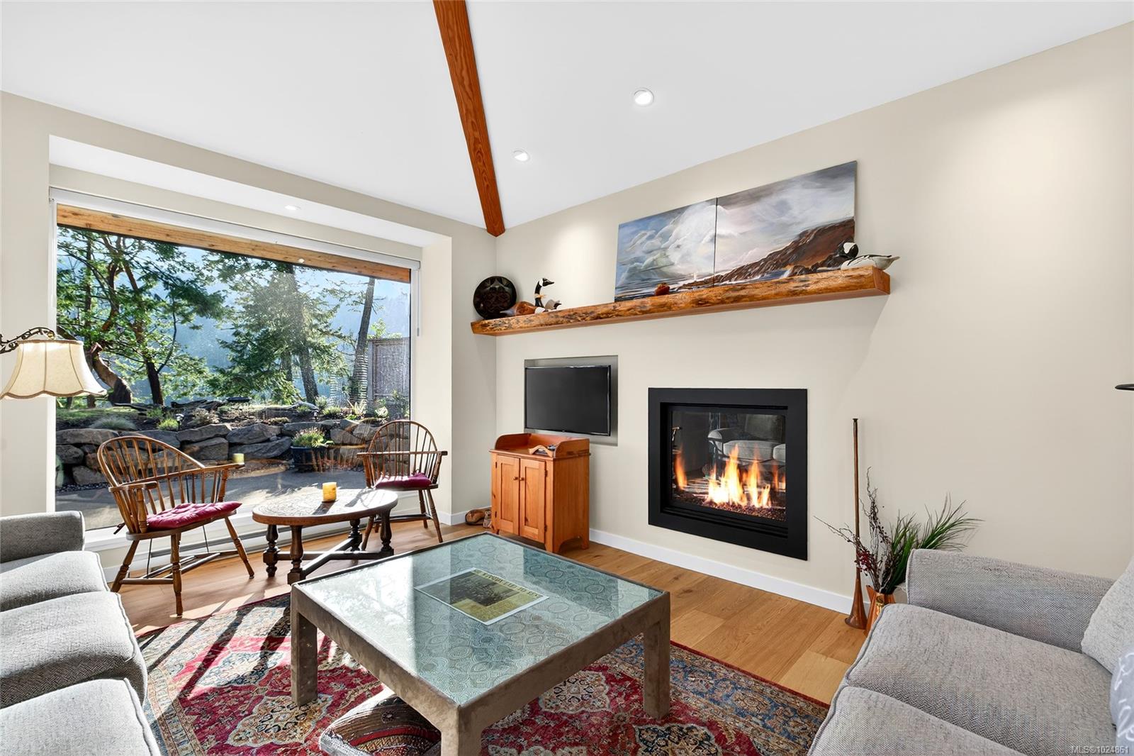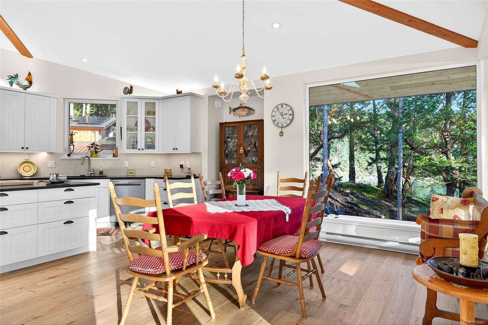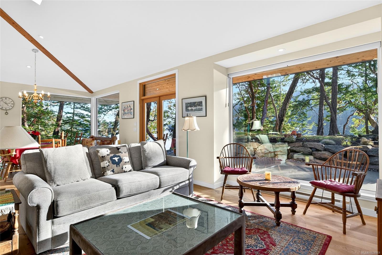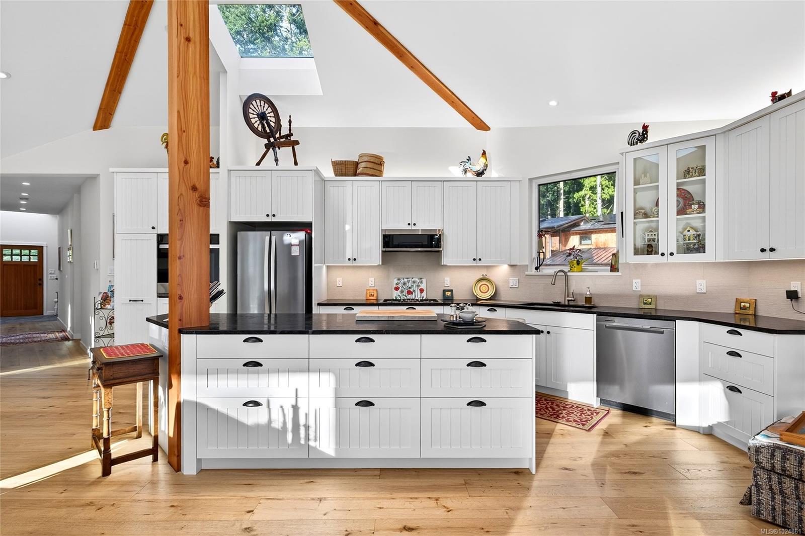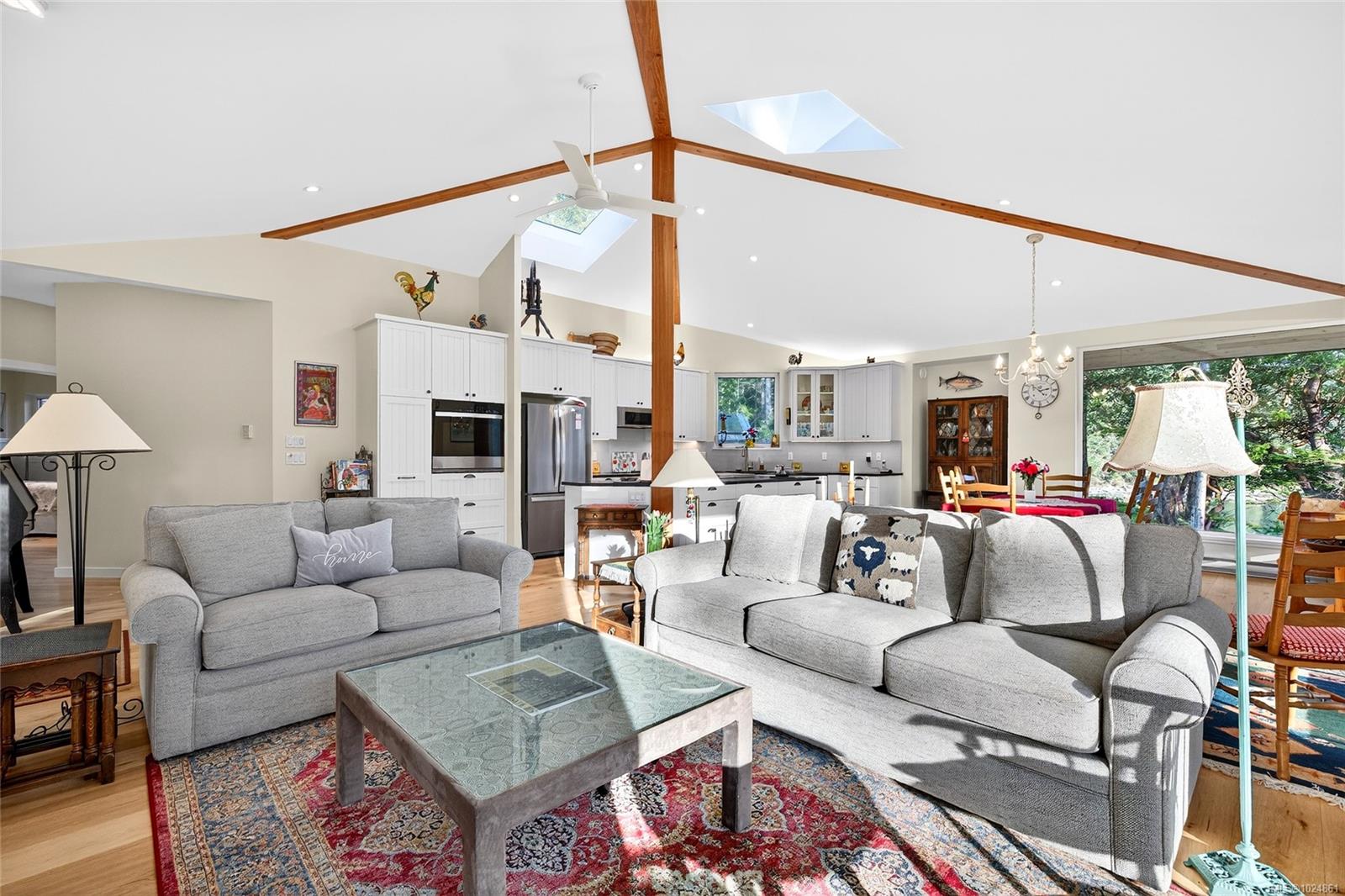Stunning oceanfront residence showcasing refined West Coast design and quality craftsmanship. This custom-built 2-bedroom, 2-bathroom plus den home is truly turnkey, offering approximately 1,600 square feet of thoughtfully designed living space. An open-concept layout with vaulted ceilings, exposed wood beams, and custom millwork creates warmth and flow, while large windows fill the home with natural light and connect it to the surrounding coastal setting and wildlife. The kitchen features custom cabinetry, a generous island with seating, and stainless steel appliances, seamlessly connecting to the dining and living areas—ideal for everyday living and entertaining. Located in the private, community of Maracaibo Estates, owners enjoy access to a marina, swimming lagoon, clubhouse, guest cottages, tennis and pickleball courts, and scenic walking trails. A rare opportunity to own an oceanfront home in a tranquil, amenity-rich setting. Maracaibo share sold separately.